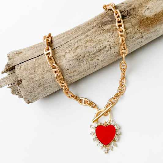 Clear CZ Trimmed Colored Heart on Helix Chain