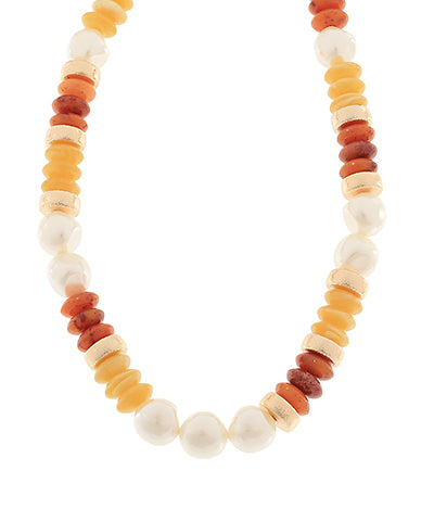 Marbled Bead & Pearl & Gold Rondelle Necklace