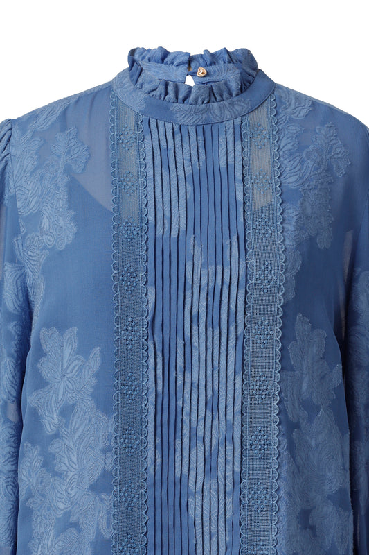 Meg Pleated Top in Smoky Blue