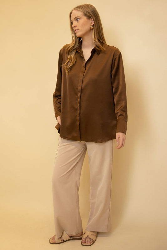 Satin Placket Cover Button Up Shirt