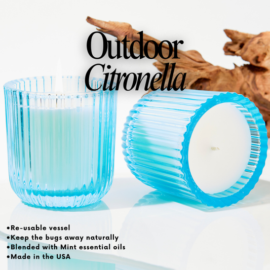 Seaside Citronella 1 Wick Blue Glass Candle 8oz Ctn.6