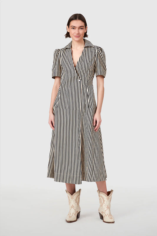Clark Dress in Ganache Pinstripes