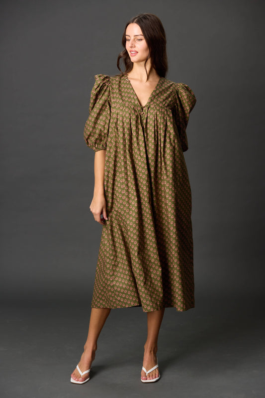 Poplin Puff Sleeve Midi Dress