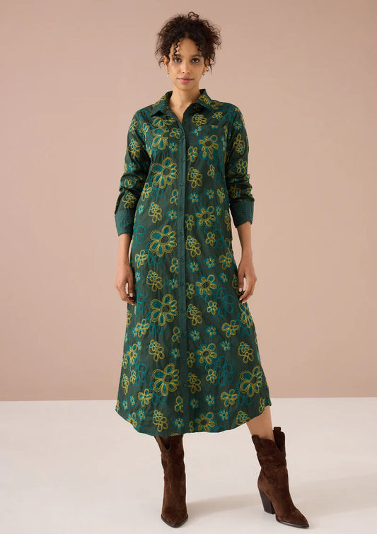 Bonnie Dress in Olive Retro Floral Embroidery