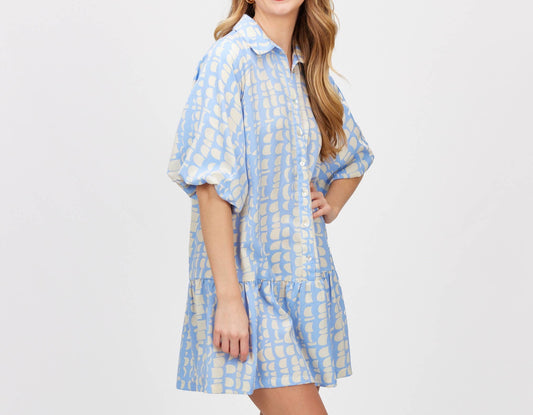 Geometric Print Puff Sleeve Dress