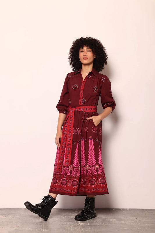 Frida Skirt Dress in Emerald Opulent Embroidered Stripe