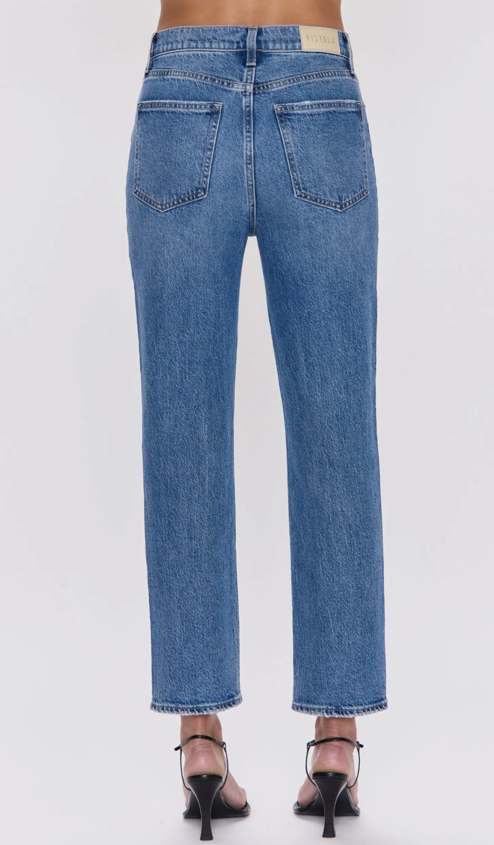 The silhouette that gets straight to the point. Bri sits confidently at a high rise and features a slim straight leg that hits at the perfect ankle length, finished with a 28" inseam. Focus brings rich depth with its sophisticated dark wash.