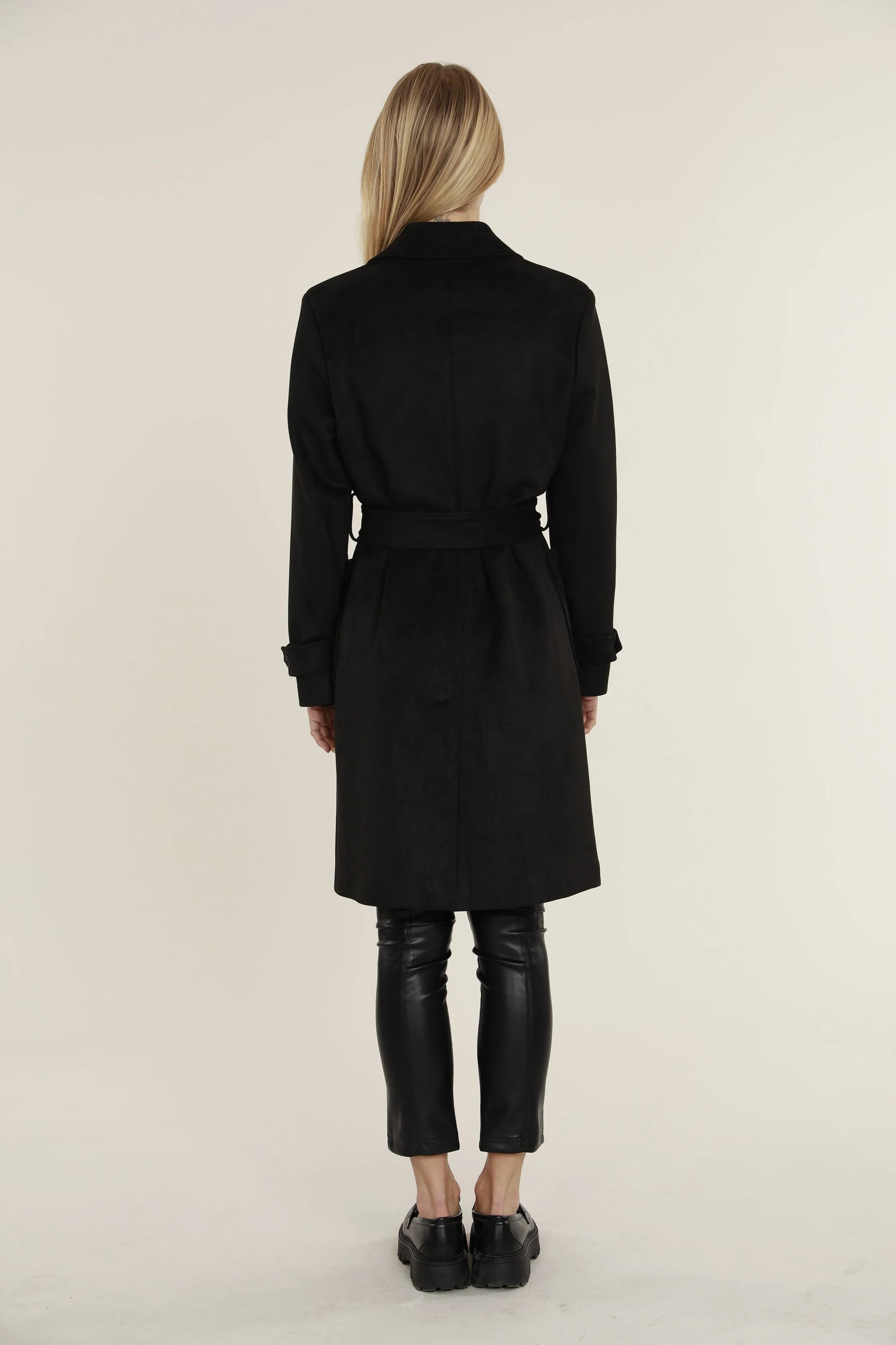 Whether you're conquering the urban jungle or stepping out for a chic night on the town, a suede wrap trench coat is the ultimate wardrobe essential. Designed to accentuate your silhouette, our belted Faux Suede Wrap Trench Coat delivers a flattering fit that will elevate any fall or winter look. It also features large front pockets, blending fashion and function seamlessly. Be effortlessly chic in a cream trench coat or exude timeless sophistication in the black, which may just be the only piece of outerwear you’ll ever need.