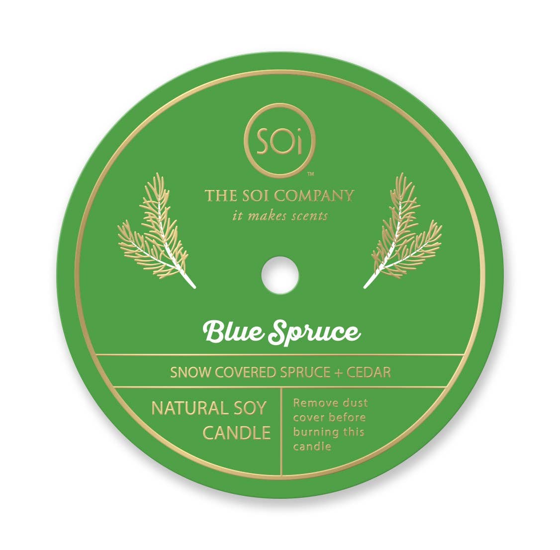 Holly Jolly 12oz Confetti Icon Candle - Blue Spruce fragrance notes: Snow Covered Spruce and Cedar.