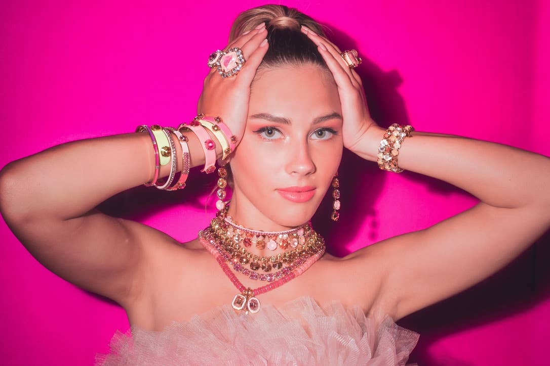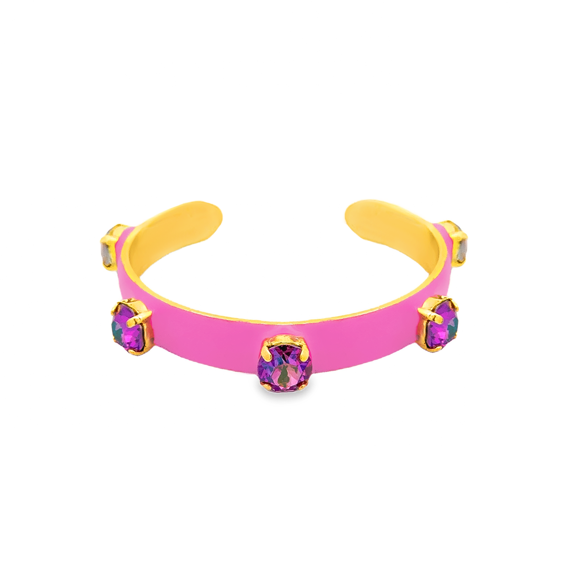 The Kennedy Cuff - a playful and unique addition to your accessory collection. Made in Canada with antique gold plated brass, high quality crystals, and hand painted enamel, this cuff is a one-of-a-kind piece that will add a touch of quirk to any outfit!