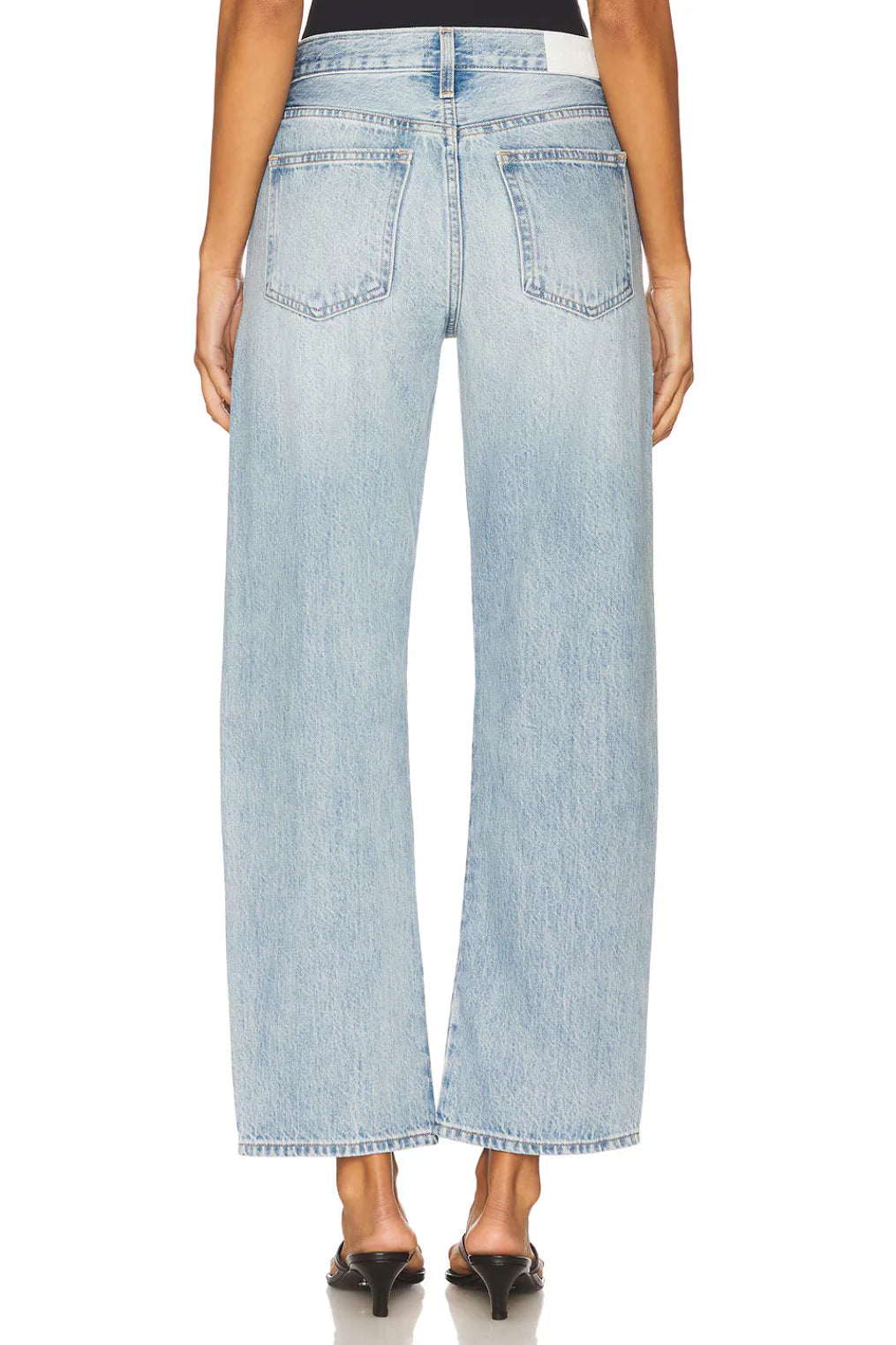 The best-selling jean that understands proportions. Lexi sits as the perfect mid-rise with our signature bowed straight leg, and a subtle curve at the knee that creates dimension without effort. Finished with a 29" inseam, the silhouette tapers to a cropped ankle with a clean hem. Crafted from our rigid denim in, a medium blue wash adorned with silver studs throughout and minor hints of distressing that feel celebratory, never overdone.