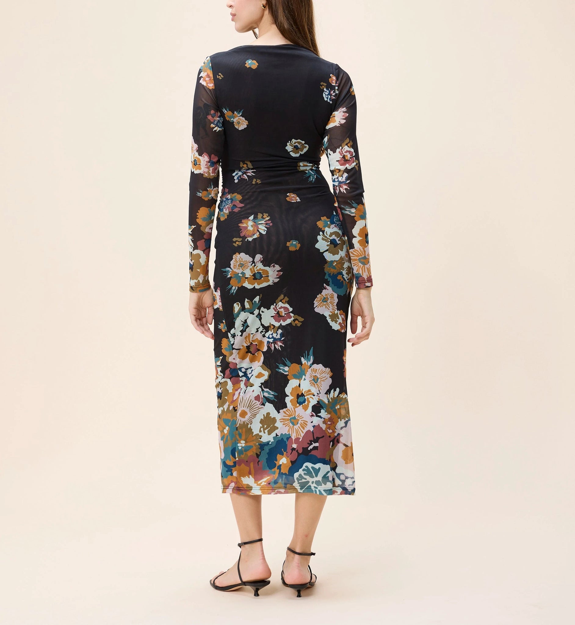 The Lura Mesh Midi Dress is a striking, body-skimming silhouette ethically handmade in India from a soft, flexible blend of 88% nylon and 12% elastane. Designed in our bold Vitet Floral print, this long-sleeve mesh dress features thoughtful shirring at the waist to flatter the figure and create elegant, effortless movement. Both sophisticated and modern, the Lura is perfect for evenings out, special occasions, or elevated day-to-night dressing.