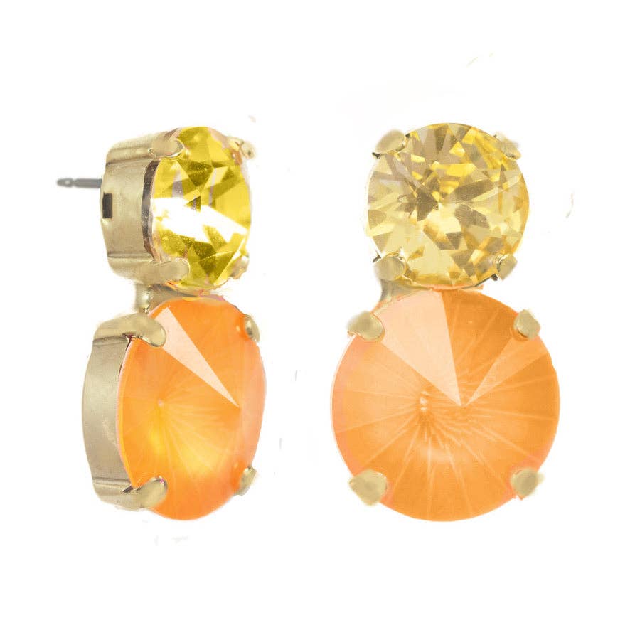 Are your ears feeling electrified? Try our Maegan Earrings in Electrics! Crafted from antique gold plated brass and sparkling with high quality crystals, these 1" studs are sure to brighten up your day - not to mention your 'do! Made in Canada with love. Now that's something to get excited about!
