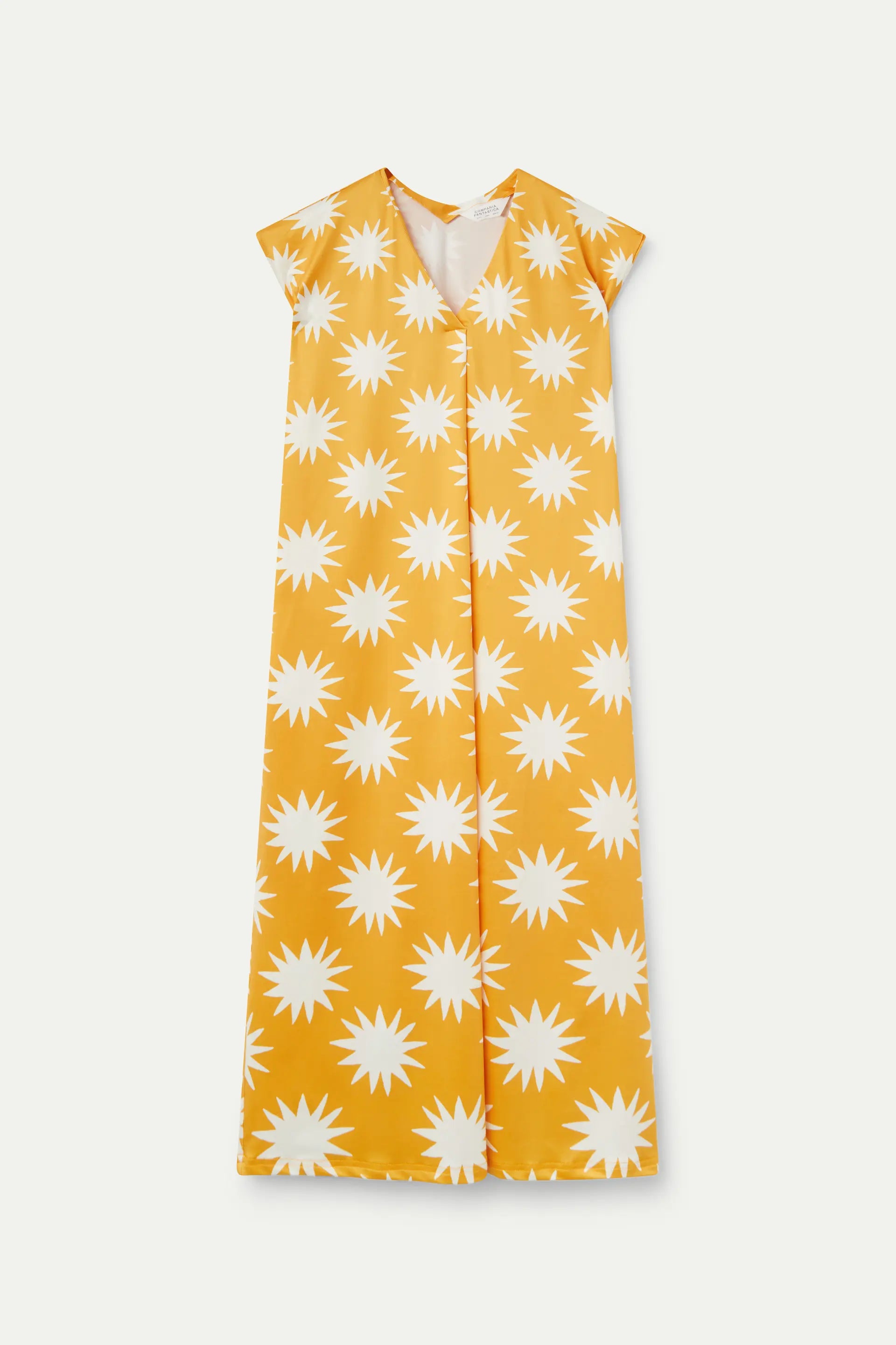 Long kaftan with Big Sun print. V-neckline and sleeveless.