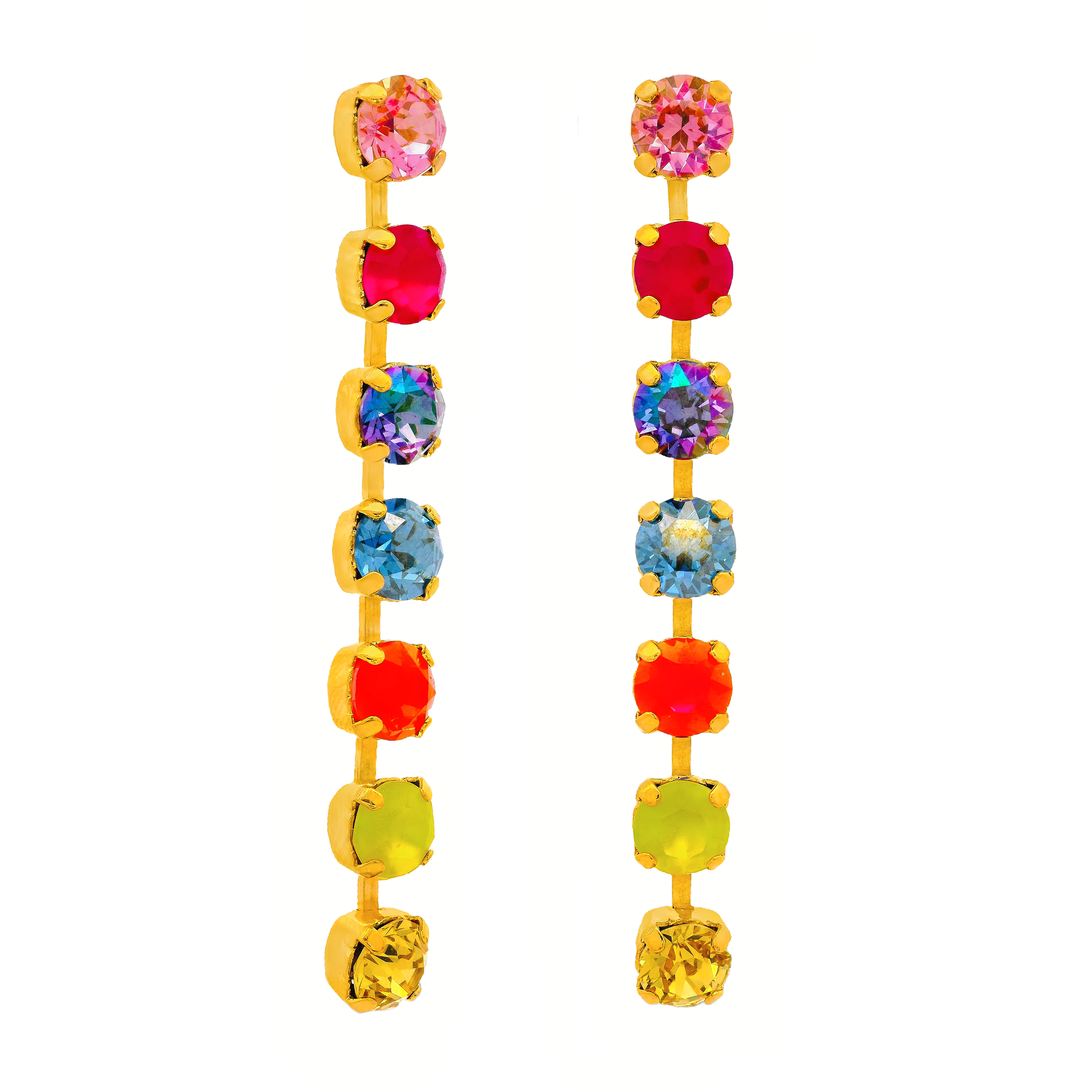 Rain or shine, you'll look totally styling wearing these sparkly Mini Berenike Earrings in Candy Crush. Boasting gold-plated brass and high quality crystals, these 2" stunners will always have you looking glam! Plus, they're Canadian-made, so you can rest assured your earrings are made with love!
