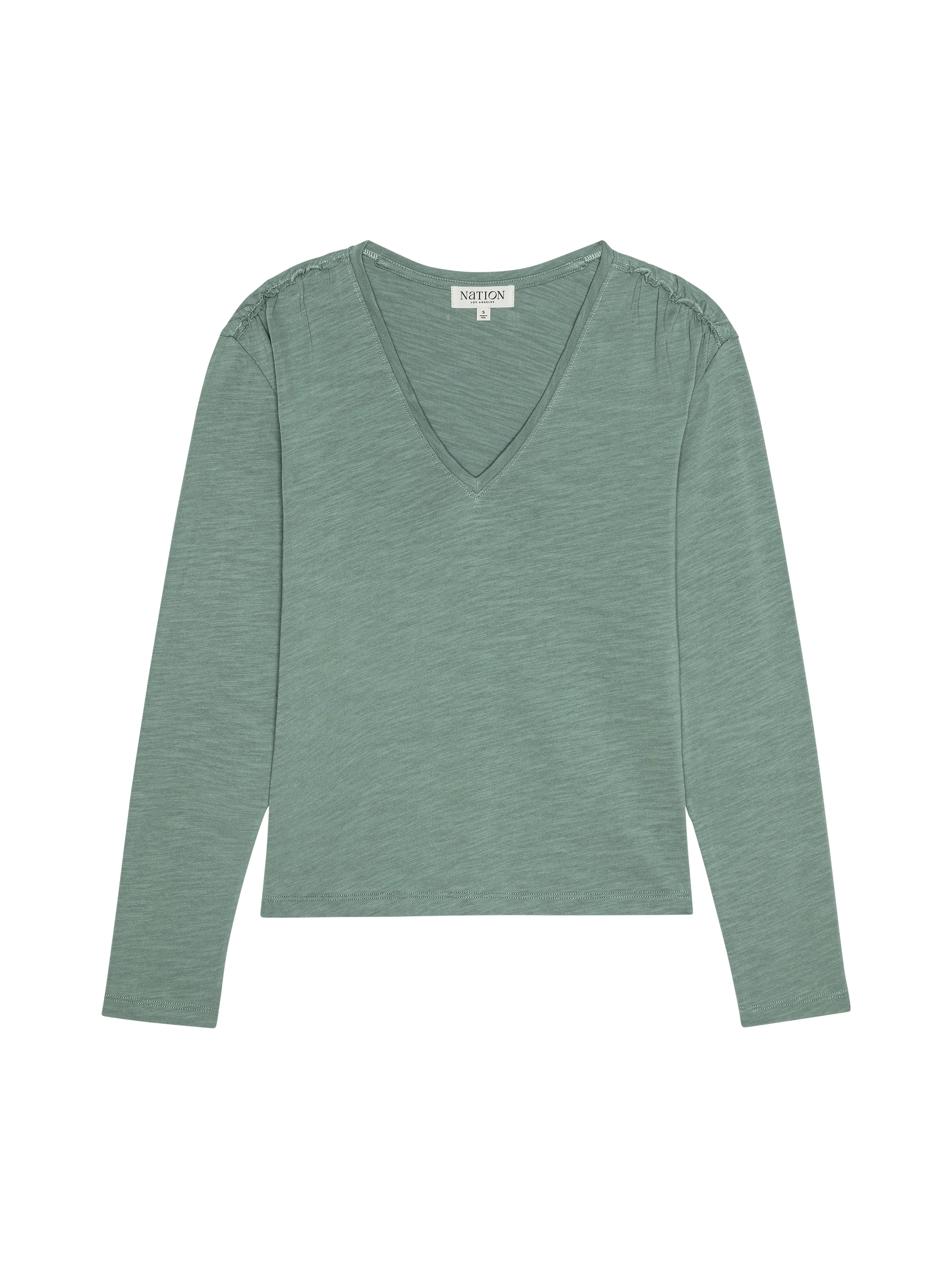 Sometimes simple is the most sophisticated. This timeless top elevates the basics with a relaxed fit, and subtle ruching at the shoulders. This one comes in Sagebrush.