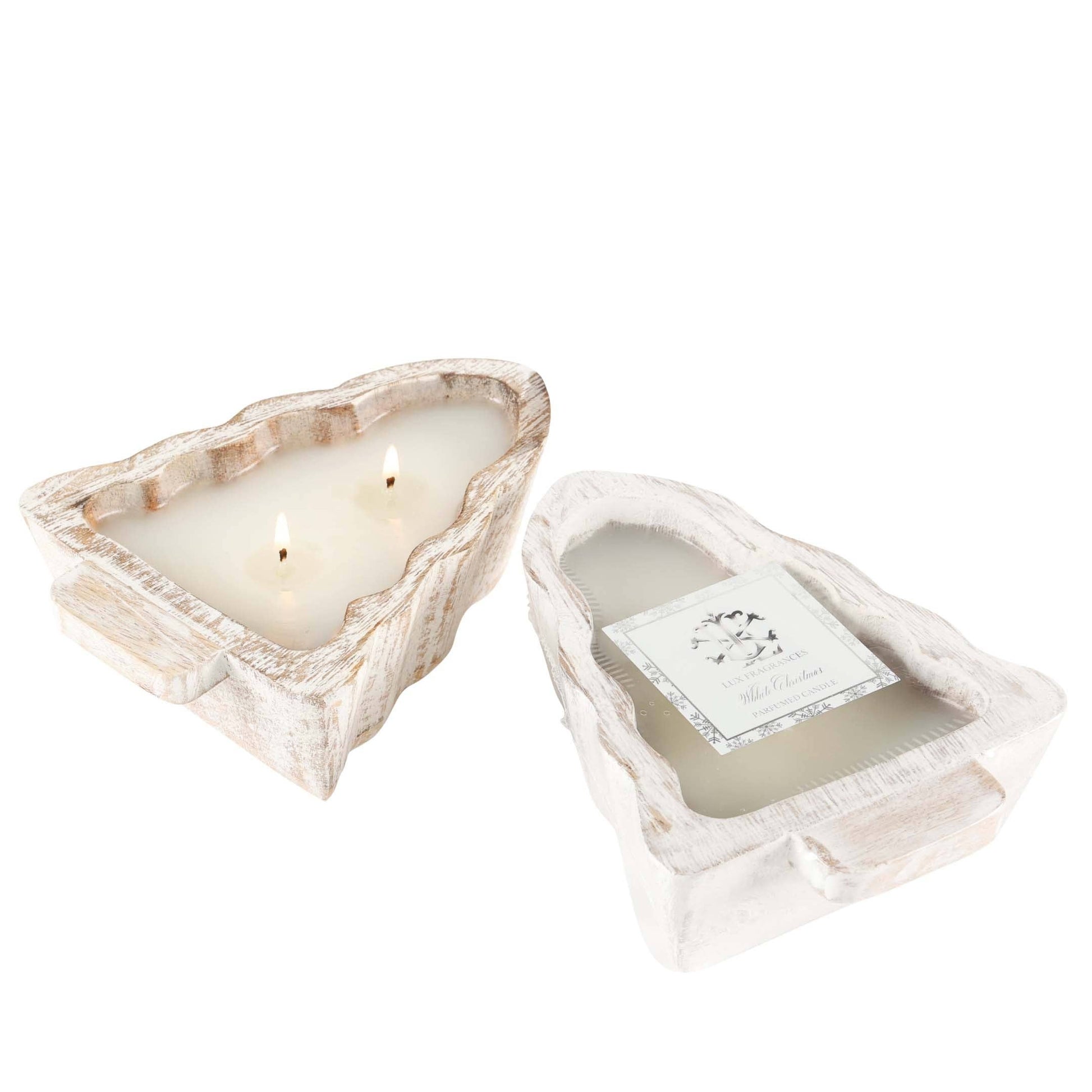 LUX White Christmas 2 Wick White Tree Wood Bowl Candle